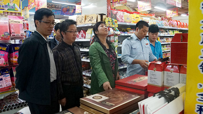 2015年9月24日,陕西省宁陕县纪委第六督查组对比月饼价目表,严查用公款购买月饼等违反八项规定精神问题
