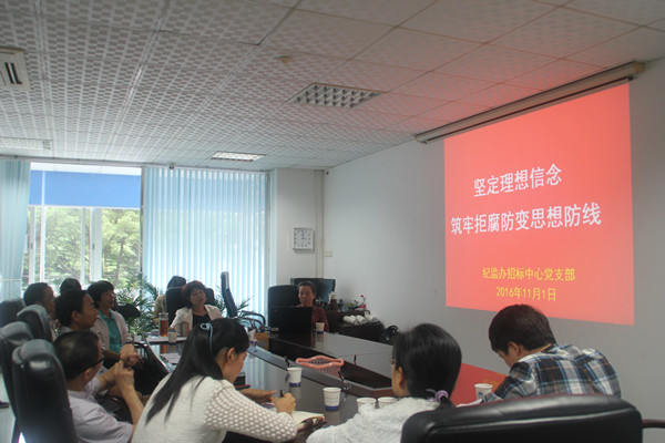 为深入开展“两学一做”学习教育,做好2016年纪律教育学习月活动,11月1日下午,纪监办招标中心联合党支部召开了主题为“坚定理想信念,筑牢拒腐防变思想防线”的支部扩大会议,部署和学习贯彻党的十八届六中全会精神。纪监办公室、招标中心全体成员参加了活动。