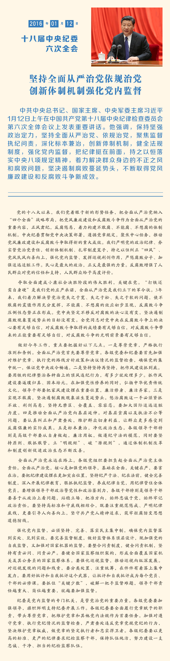 一图读懂习近平总书记在十八届中央纪委历次全会上的重要讲话