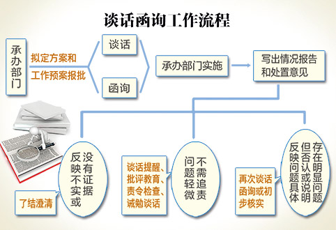 谈话函询是严肃的组织行为,绝不能走过场。《工作规则》把谈话函询单列一章,明确了具体方式和相关程序,让谁来谈、怎么谈、谈什么等一目了然,以严格规范的形式为实现“红红脸、出出汗”效果提供了有力保障。同时,《工作规则》规定谈话函询之前和之后必须履行严格审批手续,要求谈话内容记录在案,相关材料存入个人廉政档案等,具有很强的操作性和规范性,可以有效避免纪检干部滥用自由裁量权,在谈话函询中“高拿轻放”、徇私舞弊。