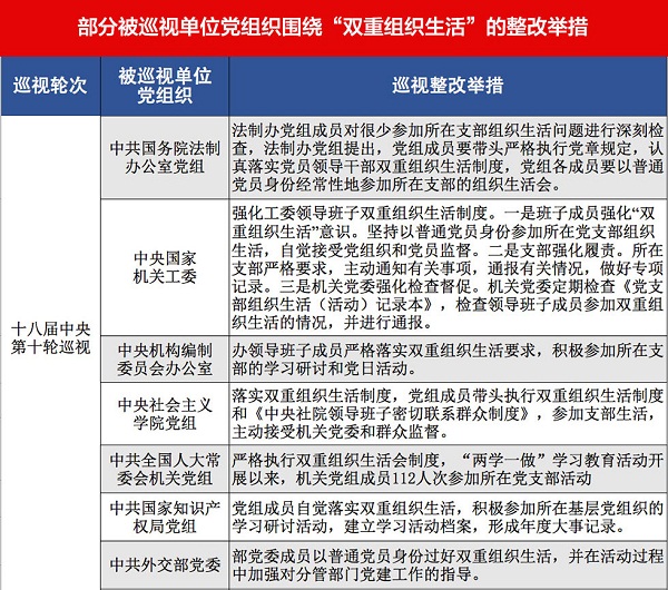 翻一翻最近几轮中央巡视反馈、整改等环节公布的信息,有关“双重组织生活”的内容还真不少。