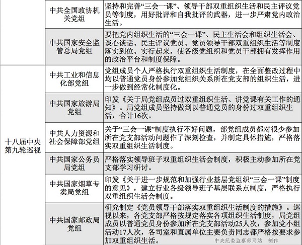 2016年11月,中央纪委秘书长、中央巡视工作领导小组成员杨晓超同志在《提高巡视政治站位 推进全面从严治党》的署名文章中“划出重点”:巡视“要对照党章规定和党内政治生活准则,重点检查党组织和党员干部……是否严格党的组织生活,认真落实‘三会一课’、双重组织生活会、民主评议党员、谈心谈话等制度,切实增强党内政治生活的政治性、时代性、原则性、战斗性。”