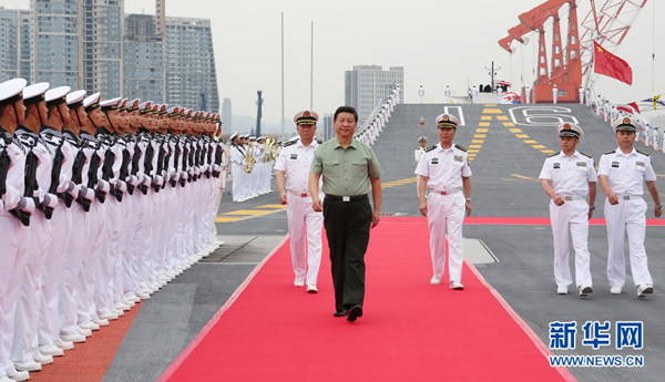 2013年8月28日下午,习近平检阅辽宁舰水兵仪仗队。 新华社记者 李刚 摄