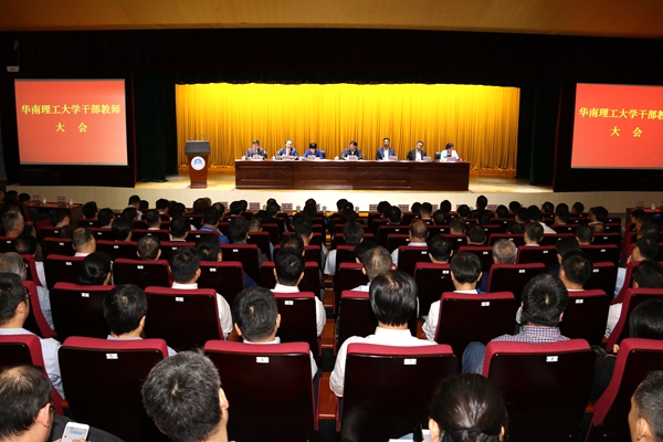 10月12日上午,华南理工大学在励吾科技楼国际会议厅召开学校干部教师大会,宣布教育部关于华南理工大学校长职务任免的决定。教育部党组成员、副部长朱之文,教育部人事司司长张东刚,广东省委组织部副部长廉奕,广东省委教育工委书记、省教育厅党组书记、厅长景李虎以及教育部、省委组织部、省委教育工委相关处室负责同志出席大会。张东刚在会上宣布了中共教育部党组、教育部关于华南理工大学校长的任免决定:高松同志任华南理工大学校长、党委副书记,王迎军同志不再担任华南理工大学校长、党委副书记职务。大会由华南理工大学党委书记章熙春主持。