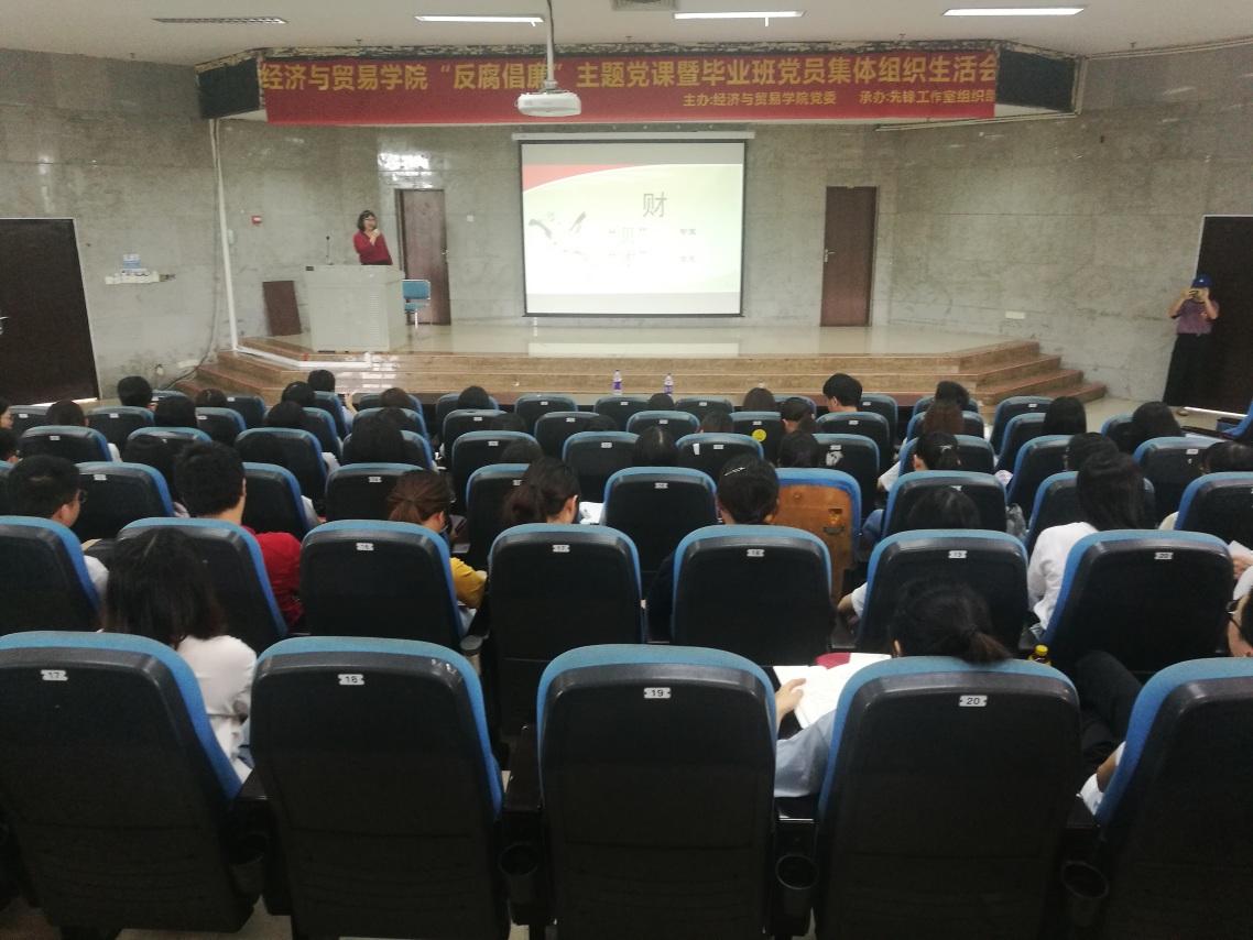 “天使与魔鬼,只在一念之间”。廉洁自律,知法、懂法、守法是每一位职场人的基本素养,也是党员的基本要求。为更好使毕业班学生党员在今后的职业生涯中,有清晰的廉政意识和行为,经济与贸易学院党委于2019年5月21日下午14:30-17:00,在A4204空中教室组织举办面对毕业班全体学生党员的“反腐倡廉”主题党课暨毕业班集体组织生活会。
