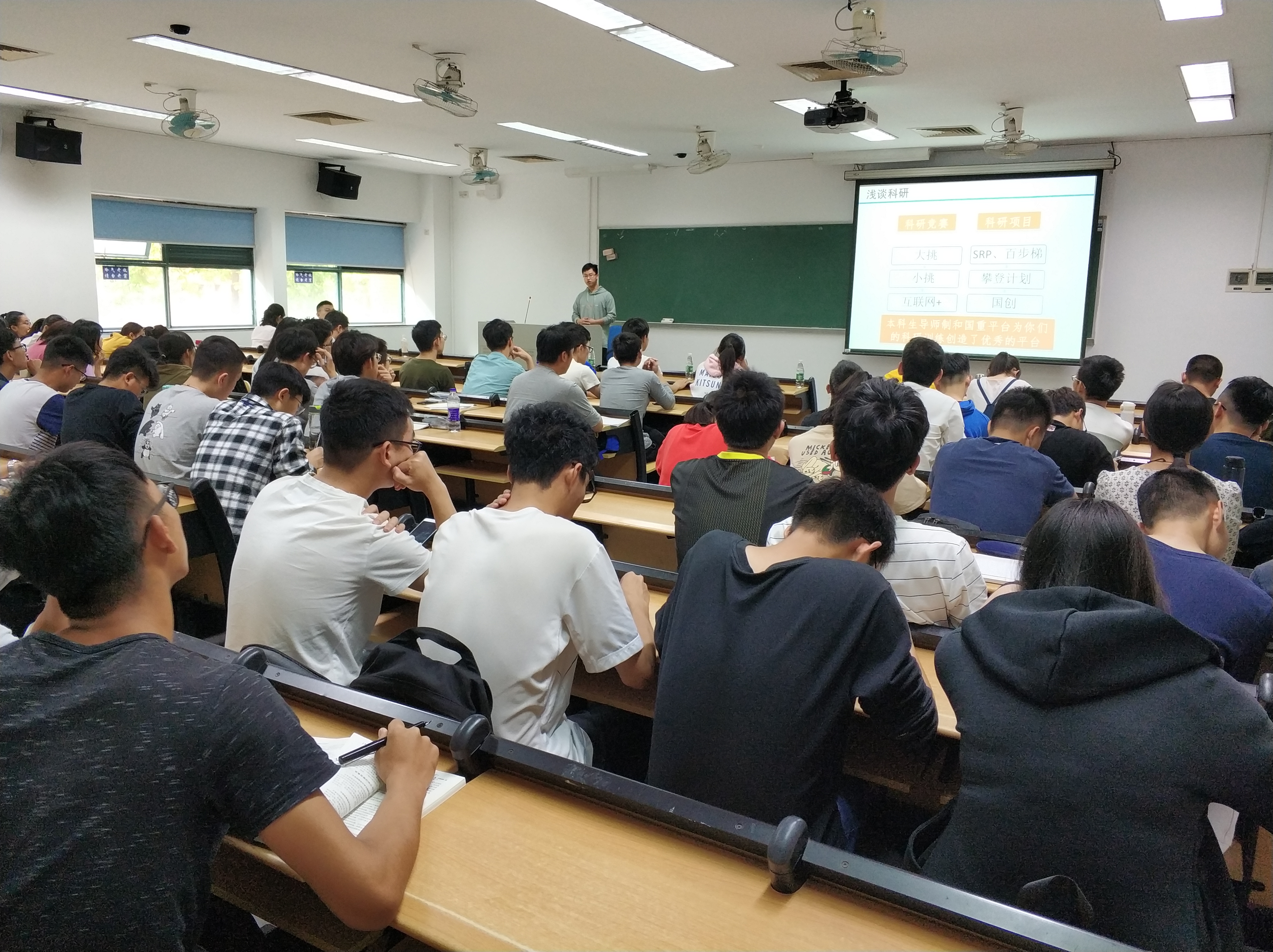 卓浩同学分享了对本科生做科研的独特见解及未来科研路的建议。他认为现代大学首先是要培养成身心健全的人,要明确自己的人生目标,努力成为自己想要成为的人。在科研方面,要敢于尝试,充分利用假期时间,积极参与学校内外 的互联网+、SRP、百步梯和国创等项目及竞赛,充分利用本科生导师制和国家重点实验室平台的良好条件,培养良好的科研素养。梁俊豪同学结合自身经历介绍了赴美国纽约州立大学esf夏令营活动情况,夏令营能够开拓视野,提升英语水平。现场的同学们还与两位学长积极互动交流。