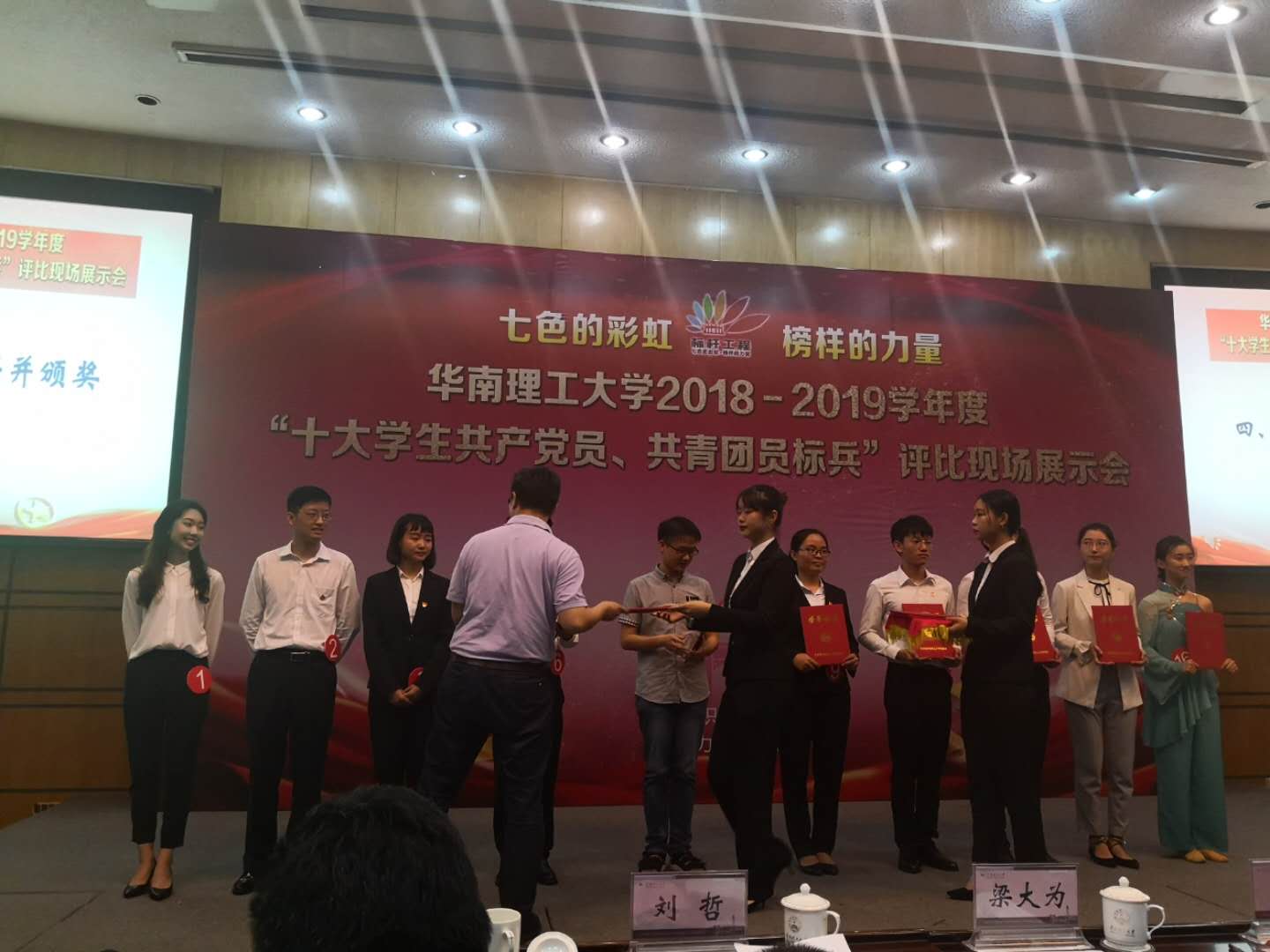2019年5月31日晚,华南理工大学2019年度“十大学生共产党员、共青团员标兵”评比现场展示会在逸夫科学馆二楼报告厅举行。经过激烈角逐,我院2016级轻化工程本科生雷智惠同学荣获“十大学生党员、共青团员标兵”称号。