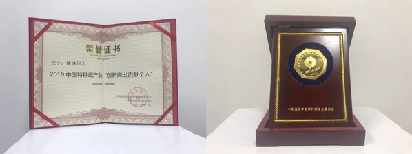 曾获2016年中国特种纸产业技术发展贡献奖