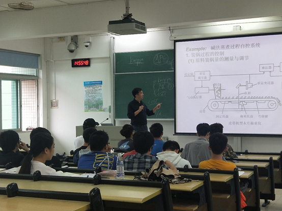 课堂上,李继庚研究员结合制浆工艺过程对整个制浆过程的传统控制系统进行详细介绍,并阐述了如何利用“机理+机器学习”的方法建立先进过程控制系统(APC)解决当前传统控制系统的问题。整个授课过程中,运用工程实例讨论、师生互动、多媒体+AR、课后作业等多种教学方法,充分调动学生课堂参与的积极性,启发同学们用心观察和思考,让学生们对重要的知识点进行多角度理解,增强解决的问题的能力。