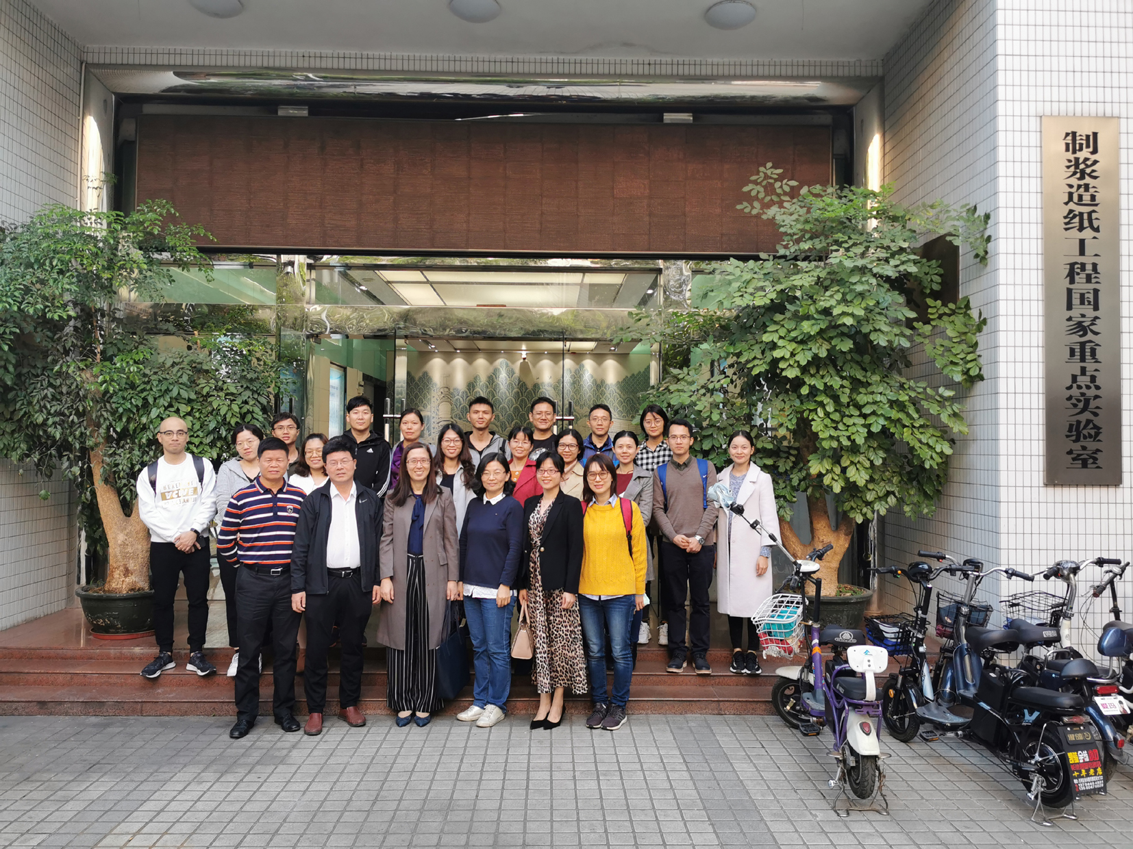 我院副院长李擘向广雅中学的老师们介绍了我院的基本情况,与老师们共同参观了“轻工与食品国家级教学示范中心”和“制浆造纸工程国家重点实验室”两个国家级平台,双方就实验室建设、仪器设备使用和管理以及实验室安全等问题进行了现场交流。参观国家重点实验室时,李擘向来老师们讲解了制浆造纸的流程和装备,介绍了目前国内外生物质研究的发展现状,参观的化学科组老师对纤维作为原料在传统领域和新兴领域的应用表现出了浓厚的兴趣。