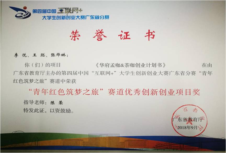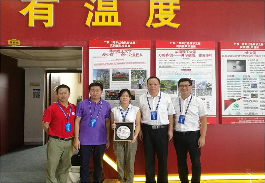 华南理工大学“爱心茶”创业公益团队成立于2016年9月,继2018年3月该团队荣获第四届中国 “互联网+”大学生创新创业大赛广东省分赛“青年红色筑梦之旅”赛道优秀创新创业项目奖之后,近日喜讯再次传来,团省委对2019年暑期“三下乡”社会实践活动进行了总结表彰,我院陈荣老师获广东省大学生暑期“三下乡”社会实践“优秀个人”。