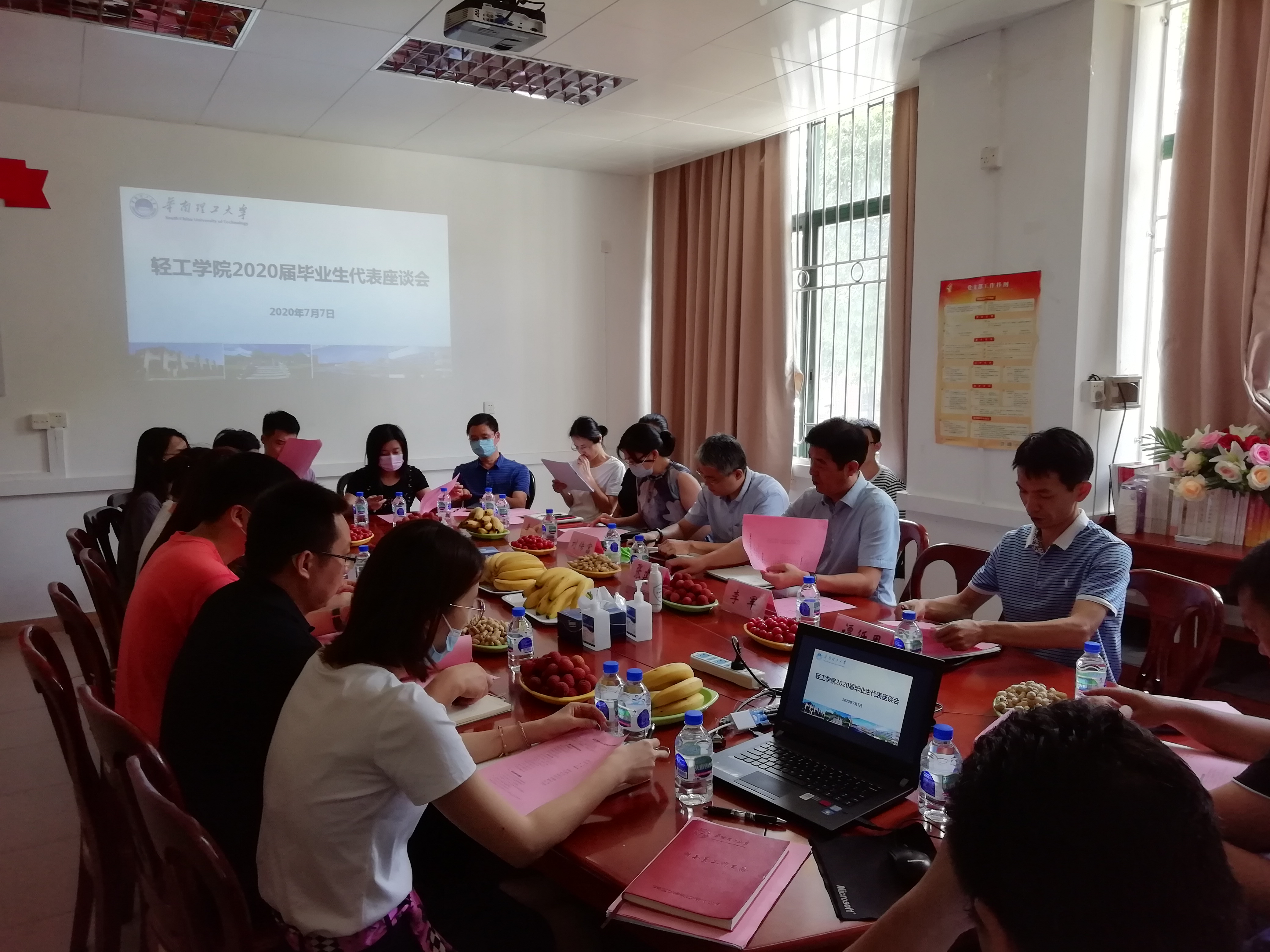 2020年7月7日下午,学院2020届毕业生代表座谈会在造纸楼204会议室举行。学院党委书记张建功、常务副院长刘传富、副院长李擘、党委副书记谭循恩、辅导员、毕业班级主任、班主任、教务员等老师与毕业生代表们相聚一堂,共叙大学的学习生活和成长感悟,共同探讨学院的发展和建设。