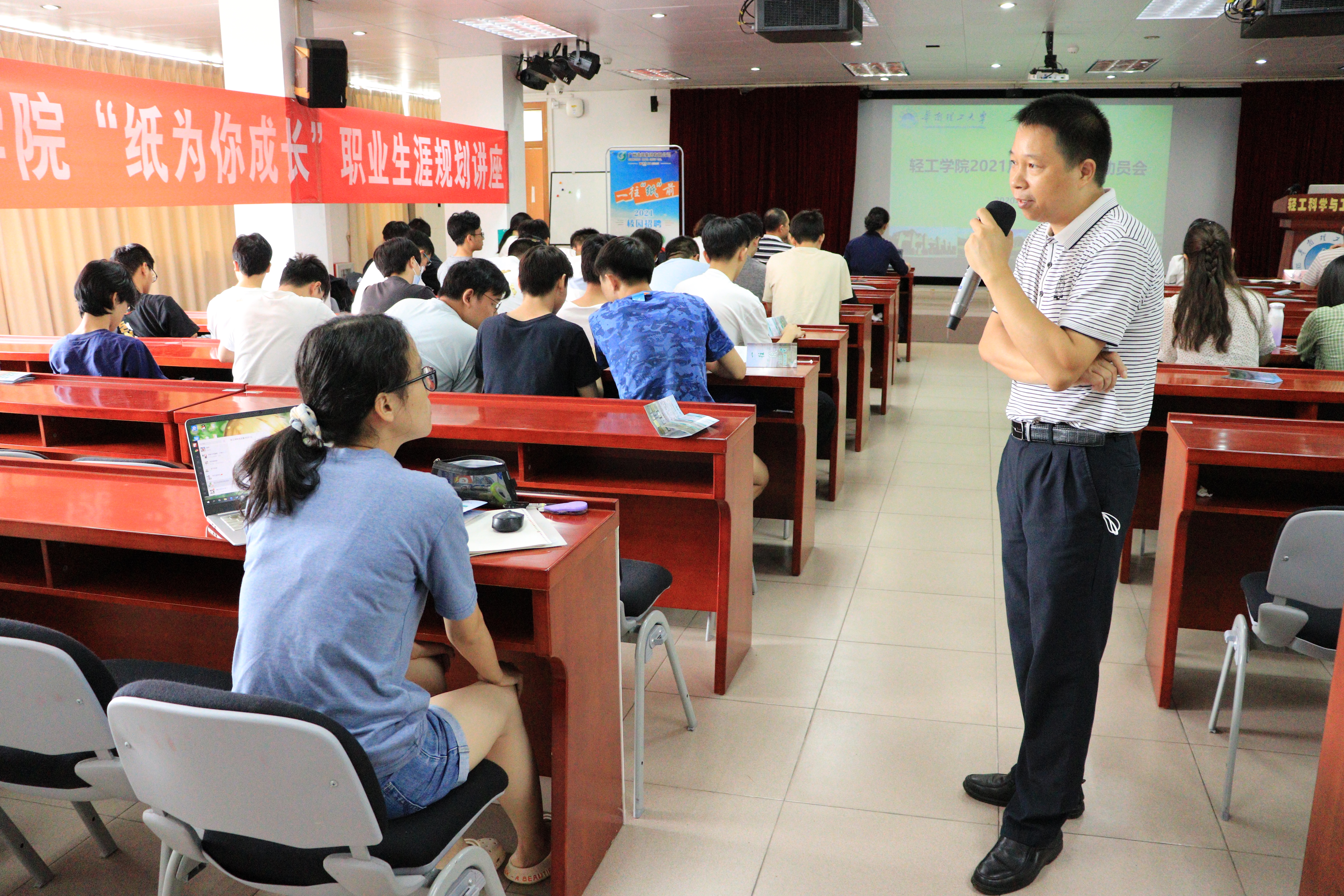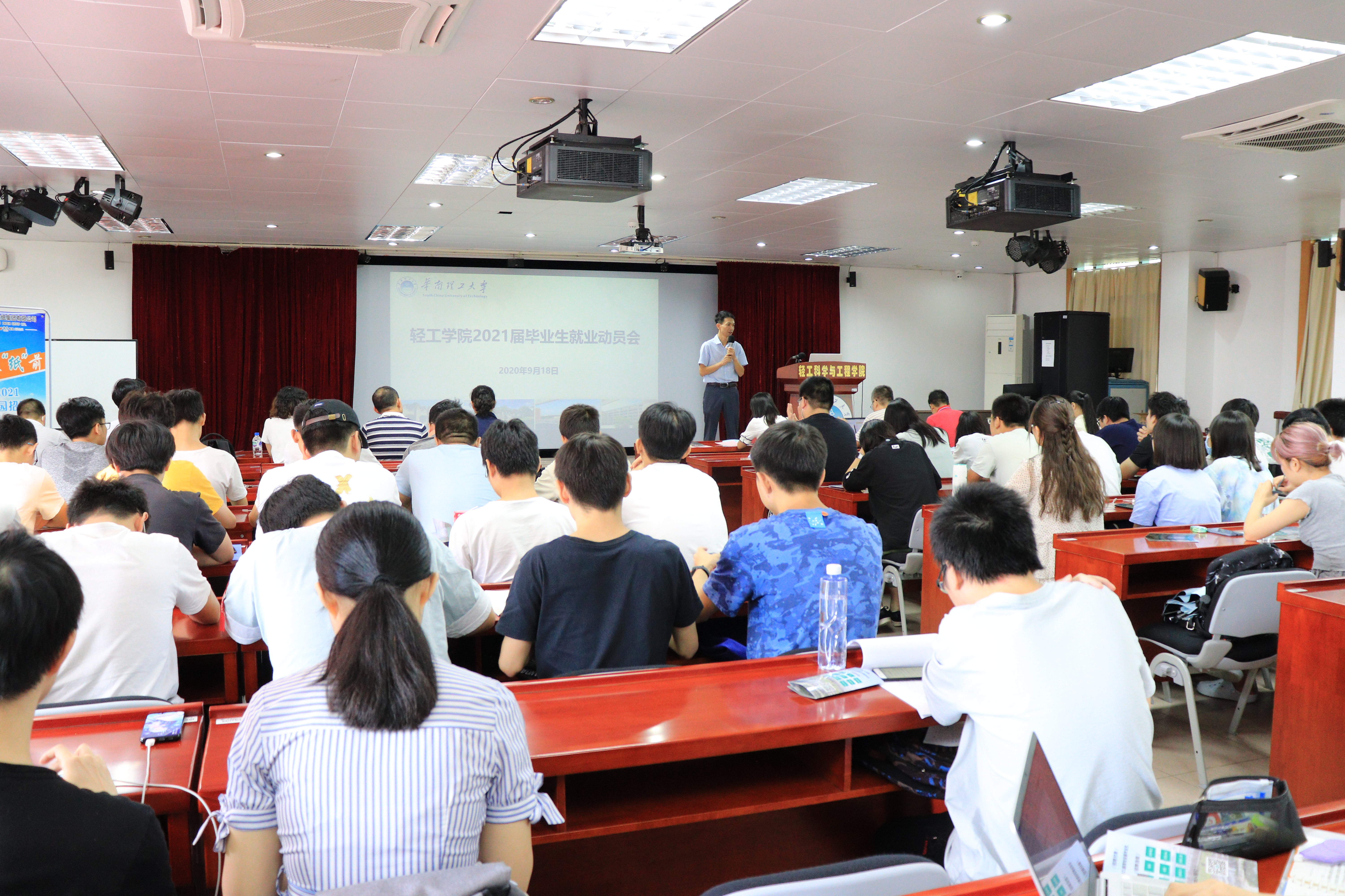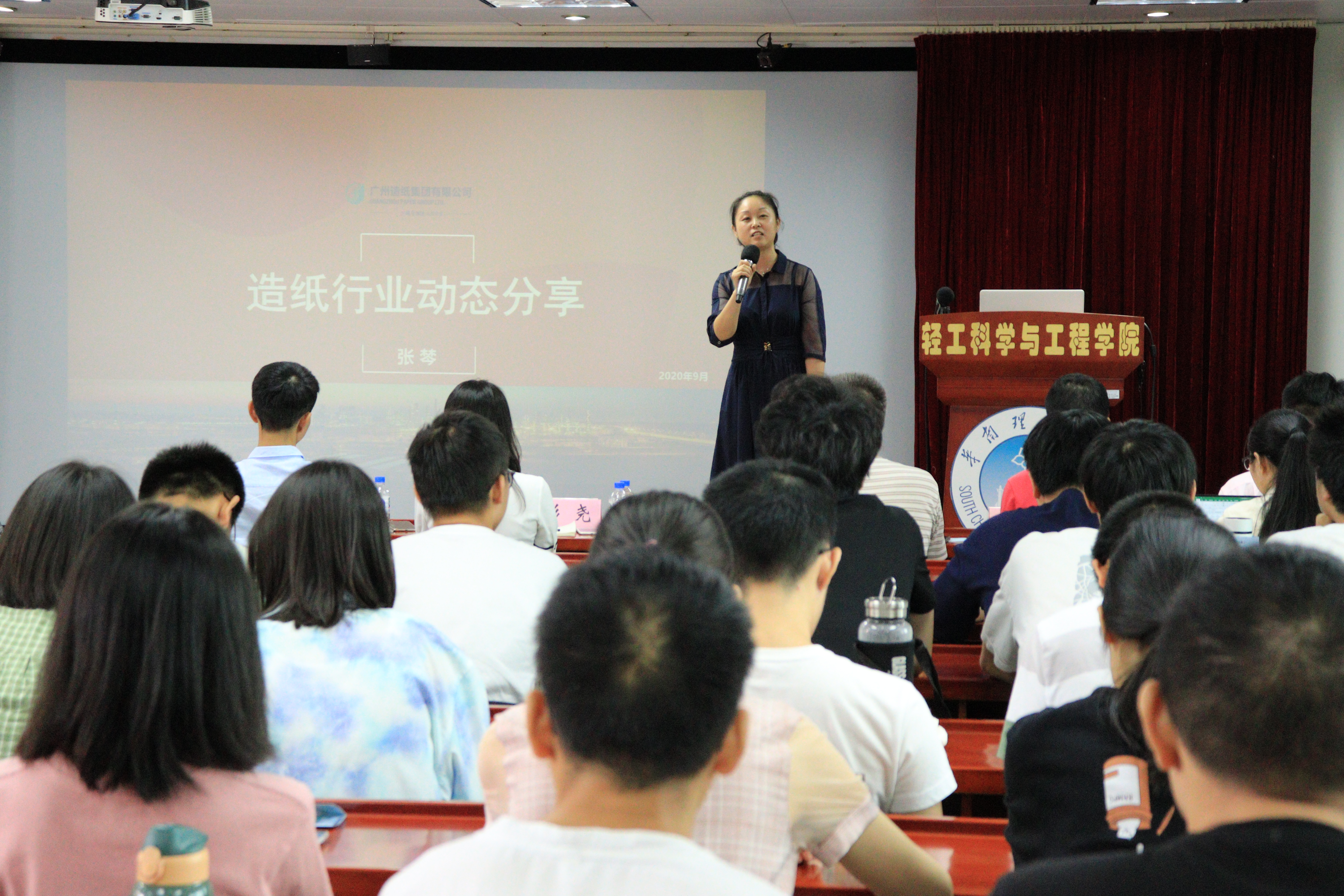 2020年9月18日上午,轻工学院2021届毕业生就业动员会暨“纸为你成长”职业生涯规划讲座在造纸楼702举行。广州造纸集团有限公司战略管理部经理张棽等一行、轻工学院党委副书记谭循恩、学校就业指导中心就业管理科科长彭尧、班主任方志强、陈荣,辅导员邝兆明、杨柳以及2021届毕业班学生参加了活动。