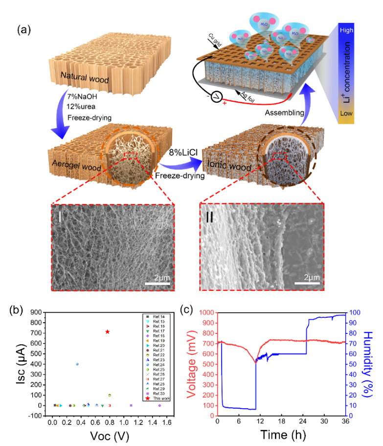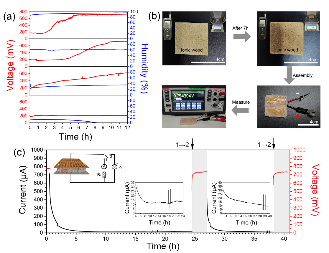 离子木材,湿气发电,呼吸空气,高效,可持续,蓝色能源