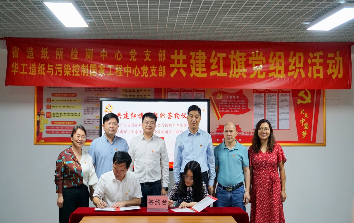 4月26日下午,广东省造纸研究所检测中心党支部与华南理工大学造纸与污染控制国家工程研究中心党支部在省造纸所科研开发基地开展“校企深合作,携手齐共建”为主题的共建红旗党组织活动。华南理工大学轻工科学与工程学院党委书记张建功、广东省造纸研究所党总支书记、执行董事胡大鹏出席战略合作交流和签约仪式。