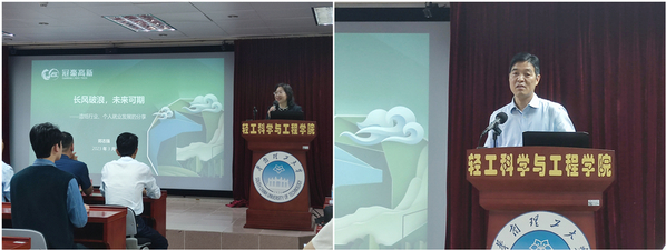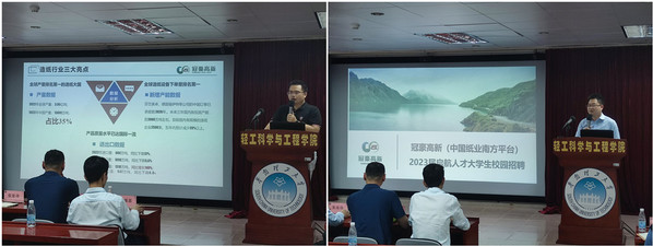 随后,营销中心国内业务部总监郑志强围绕造纸行业发展现状和前景开展了讲座,详细介绍了目前造纸行业发展遇到的困境及机遇,并结合自身深耕造纸行业多年的经验,向同学们介绍了毕业生在企业的参考发展路径。人力资源部副总监钟日超就冠豪高新的人才招聘需求,及公司福利待遇等方面进行了详细介绍。