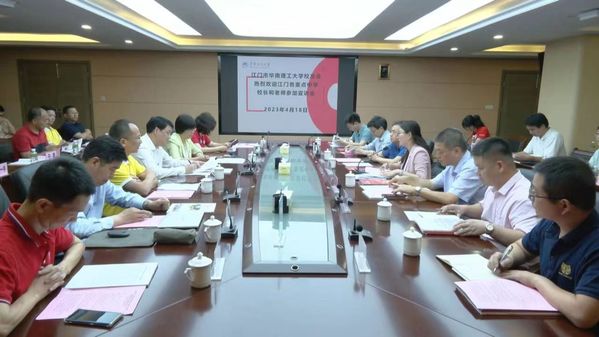 4月18日,学校党委副书记、纪委书记徐国正率队赴江门市开展本科招生宣传,与江门市教育局局长梁凤琼、副局长赵燕等领导进行座谈,并与江门一中等江门市12所国家示范性高中分管高考的校领导及高三级组长进行交流。