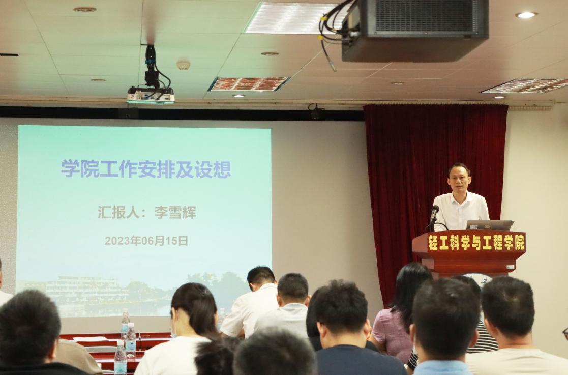 2023年6月15日下午,我院在造纸A楼702会议室召开全院大会。学院党委书记张建功、院长李雪辉、党委副书记谭循恩、副院长李擘、彭新文、方志强及全体教职工出席会议,大会由李雪辉主持。