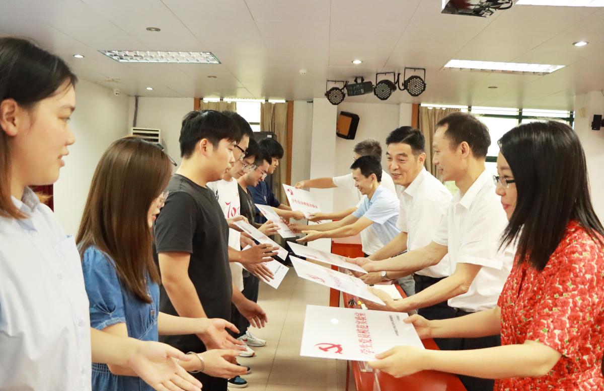 随后举行的学生党员模范实验室授牌仪式,学院党政领导为各党员模范实验室负责人授予牌匾,并举行揭牌仪式。