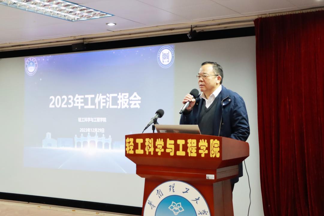 会议伊始,李雪辉作学院2023年度工作总结。他指出,在学院党委的领导下,2024年我院将坚持以习近平新时代中国特色社会主义思想为指导,以中国特色和世界一流为建设目标,坚持“四个面向”,锚定高端化、智能化和绿色化,实施强基、育苗、托举和引领四大措施,促进学科交叉融合,助推轻工行业高质量发展。