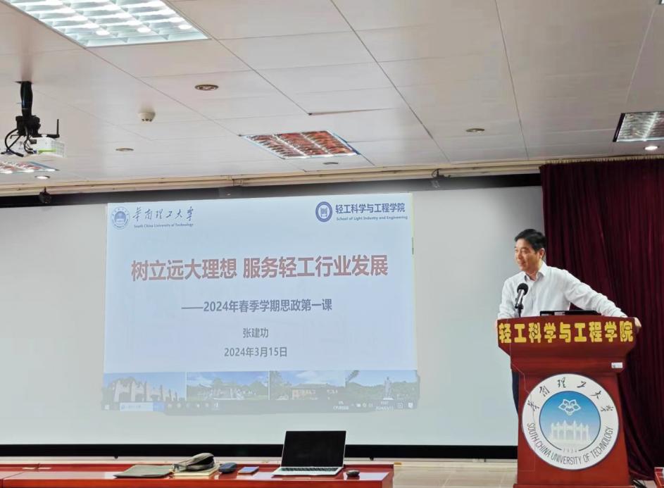 春风拂面,万象更新。为贯彻落实教育部等十部门《全面推进“大思政课”建设的工作方案》精神,打造思想引领“桥头堡”,推动思想教育向一线学生群体延伸,3月15日,学院党委书记张建功以《树立远大理想 服务轻工行业发展》为题,面向2022级全体研究生党员、入党积极分子等近百名同学开讲春季学期“思政第一课”,共同展望了新一代轻工学子的美好愿景。