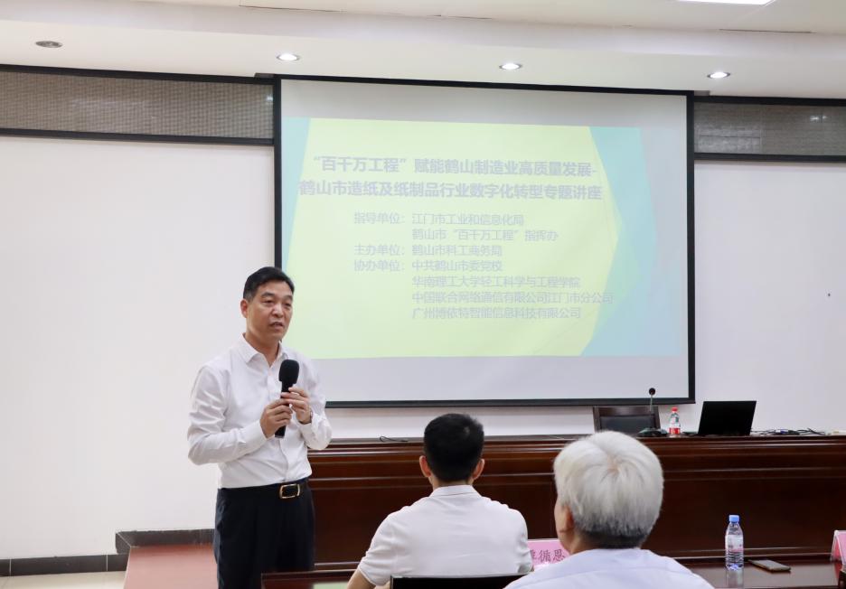 本次讲座由江门市工业和信息化局、鹤山市“百千万工程”指挥办指导,鹤山市科工商务局主办,华南理工大学轻工科学与工程学院、广州博依特智能信息科技有限公司、中共鹤山市委党校等单位协办,以“创新印刷·数智未来”为活动主题,聚焦行业精益生产、造纸及纸制品行业数字化转型。