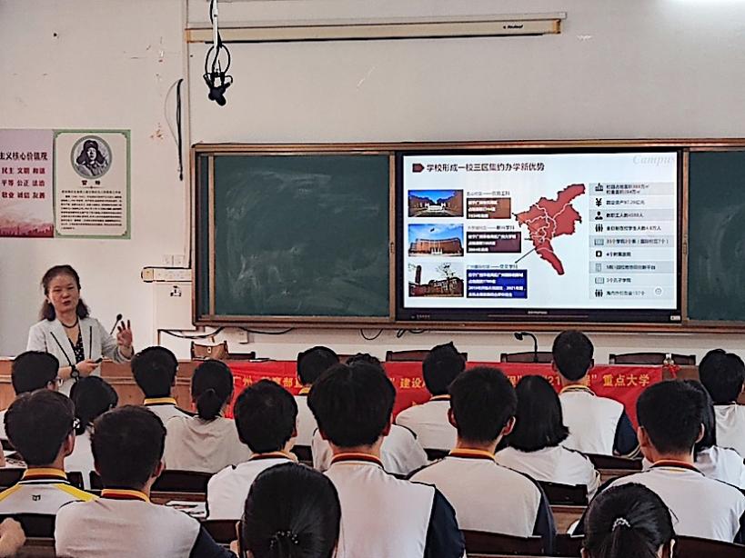 同日,学院党委副书记谭循恩、田英姿教授分别率队前往开平市第一中学、恩平市第一中学开展本科综合评价招生宣讲,向在座学生介绍了广州国际校区的建设背景、现状和招生政策,以及学校的学科专业设置、教学科研等基本概况,鼓励在座同学们树立远大理想,脚踏实地地为实现梦想而不懈奋斗。