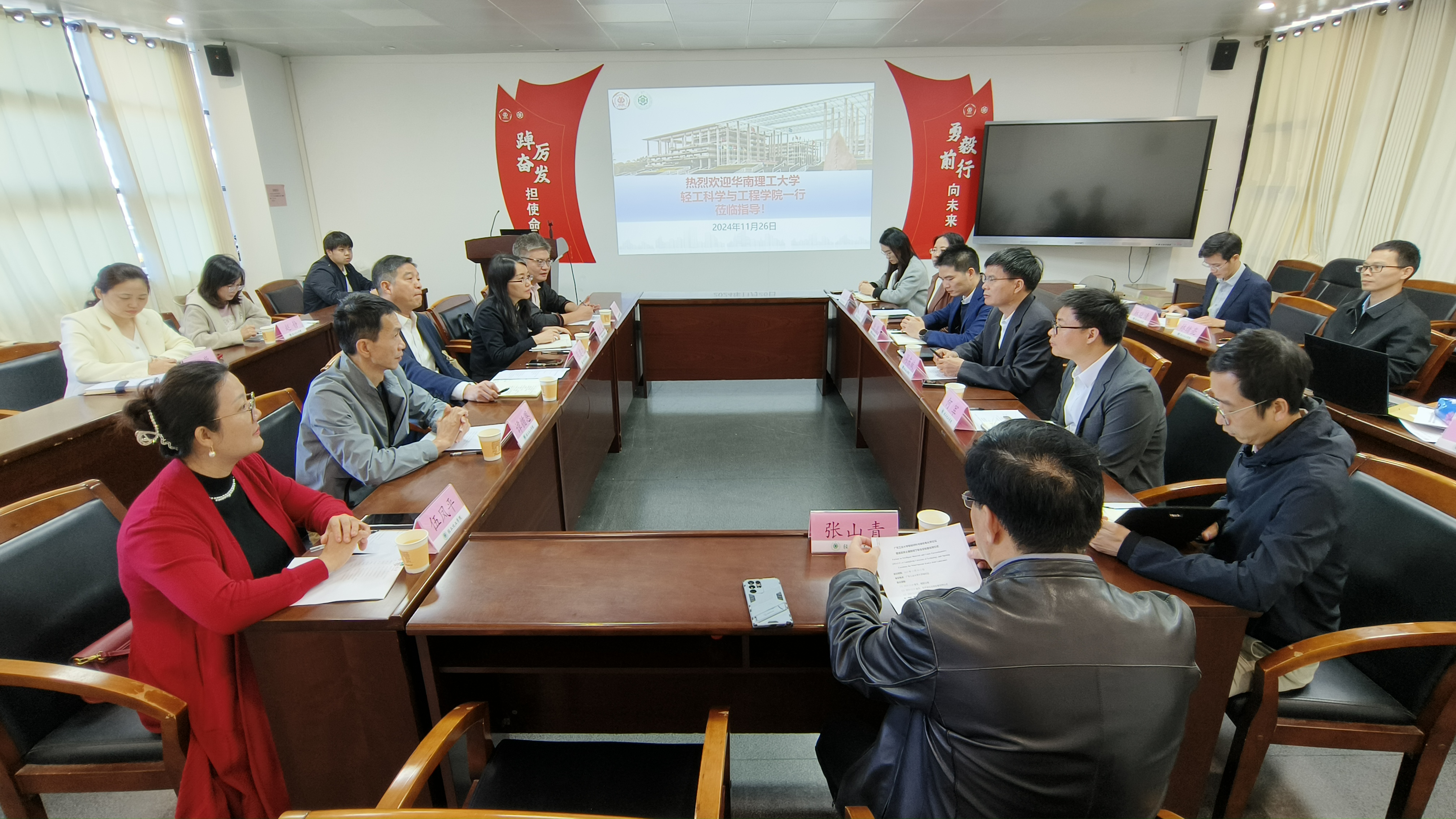 11月26日,学院党委书记张建功带队,学院领导班子及办公室有关工作人员一行7人赴广东工业大学轻工化工学院开展调研交流。轻工化工学院党委书记周东斌及领导班子、院长助理、教授代表等出席了交流活动。