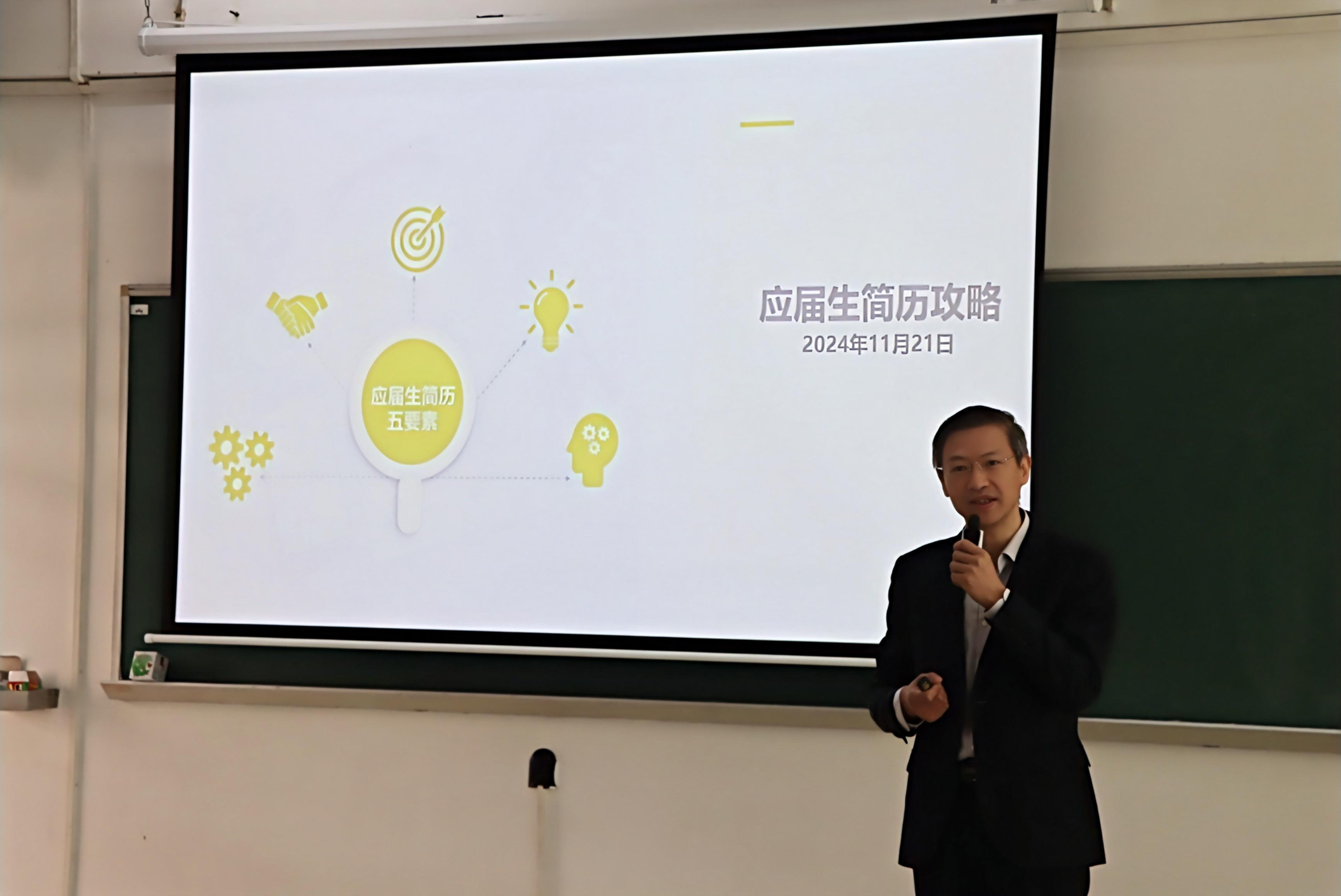 为增进同学们对职场的认知,增强职业规划能力,提升简历制作技能,11月21日上午,学院邀请睿观生涯教练刘翔校友为同学们开讲“应届生简历攻略”。活动由学院党委副书记谭循恩主持。研究生辅导员罗立新,以及70多名本科毕业班和硕士高年级同学参加讲座。