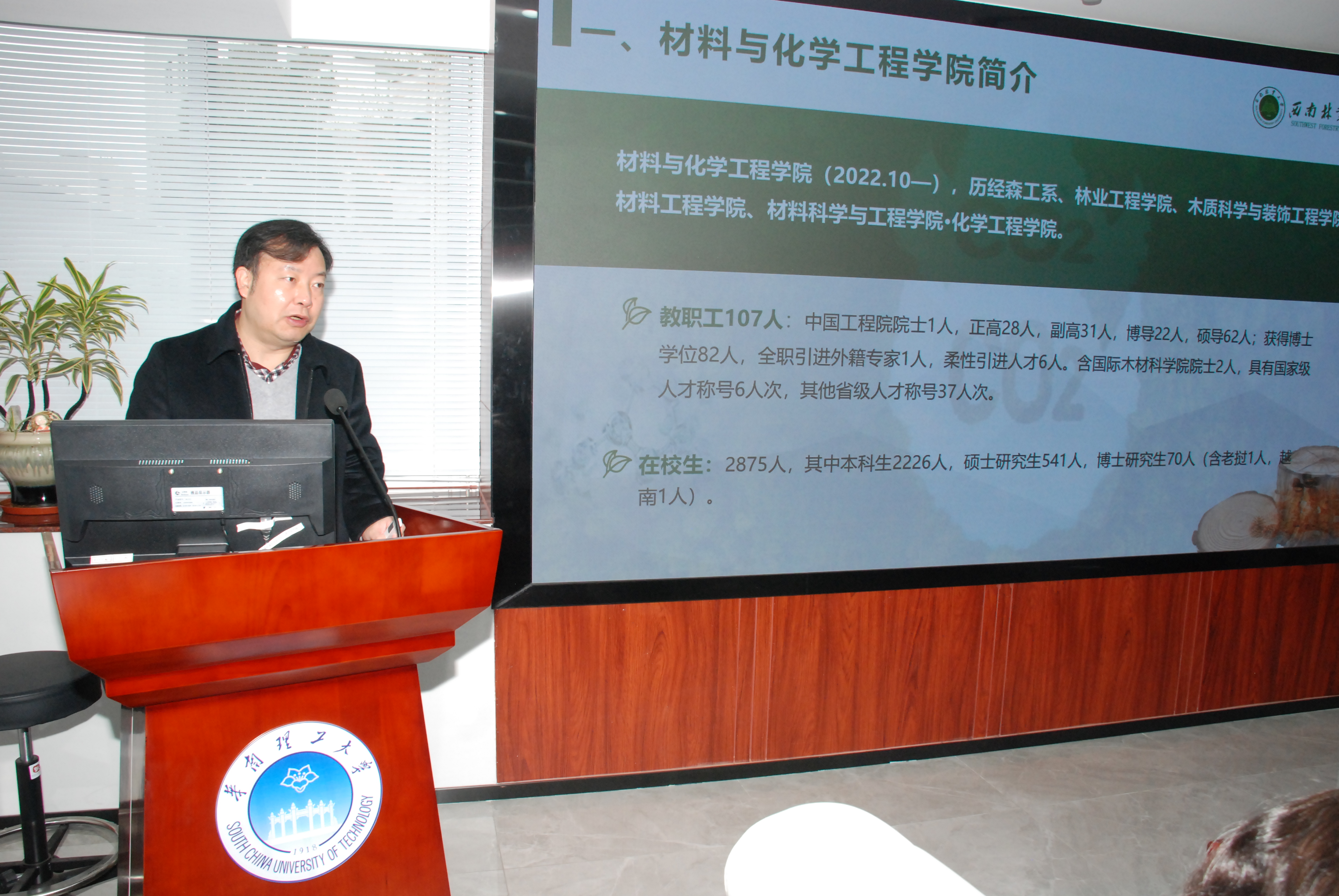 李向红对学院和国重近年来取得的丰硕成果表示赞赏,他简要介绍了西南林业大学的办学历程、办学优势和发展战略,并从师资队伍、人才培养、国际合作、科研成果等方面介绍了材料与化学工程学院的发展现状,以及双方合作的情况。表示希望双方未来能够开展更广泛、更深层次的交流合作,携手推动相关学科与科研高质量发展,开启双方合作的新篇章。