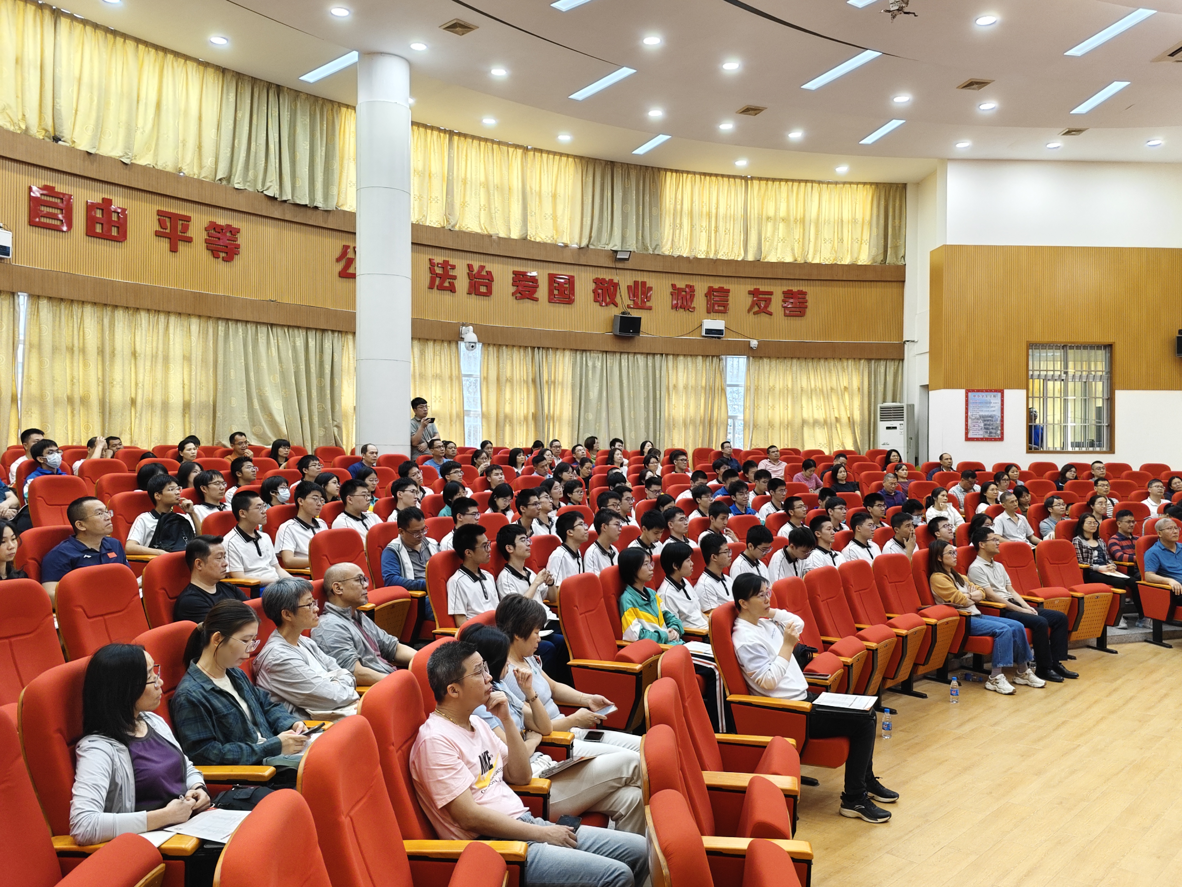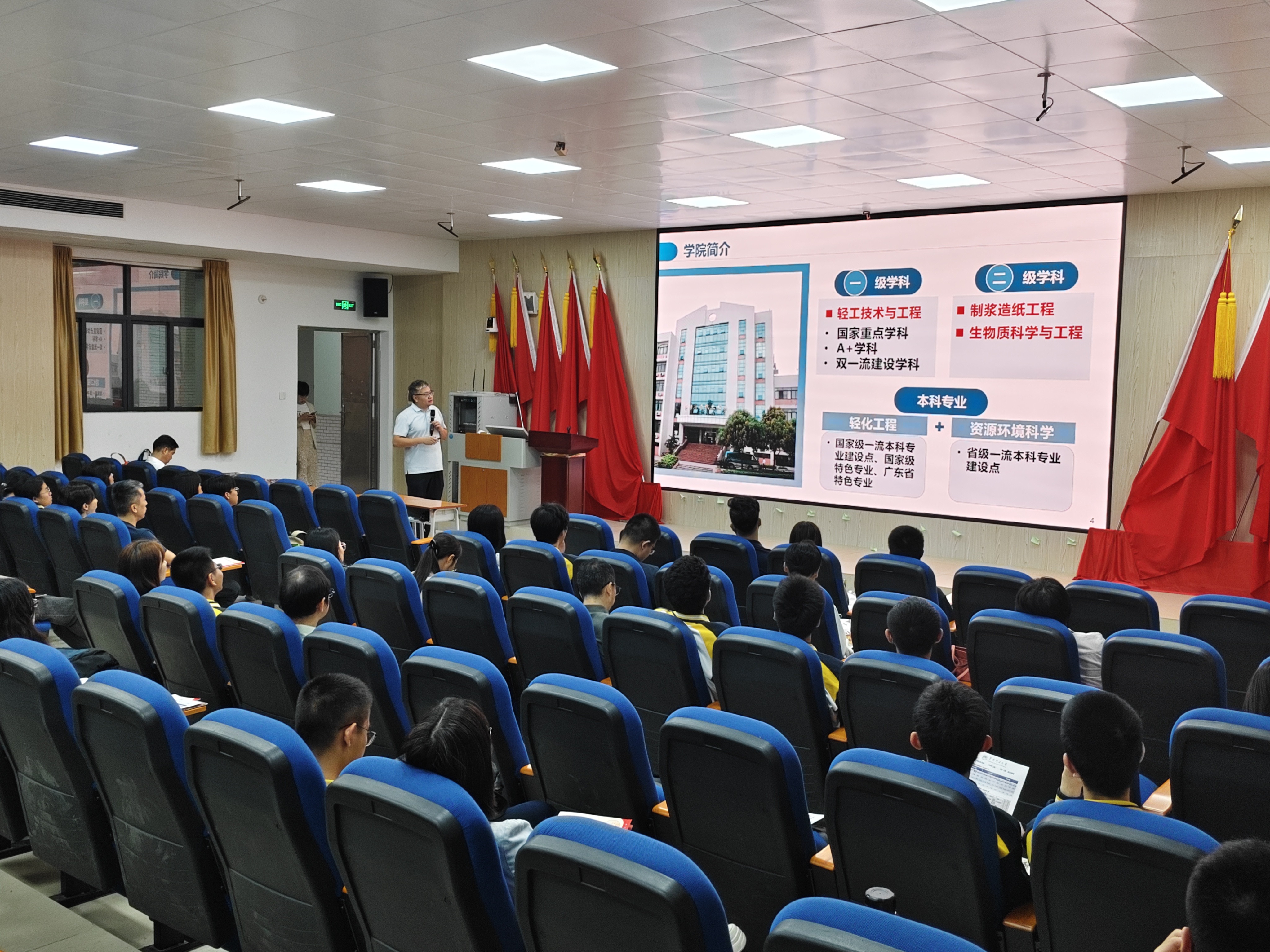 随后,学院副院长方志强从学院的发展历程,学科实力,人才培养等方面详细进行了学院情况介绍,鼓励考生积极报考我院。江门一中毕业生,我院24级本科生陈嘉华同学介绍了在大学的学习体会以及高考备考经验,勉励师弟师妹们努力拼搏。