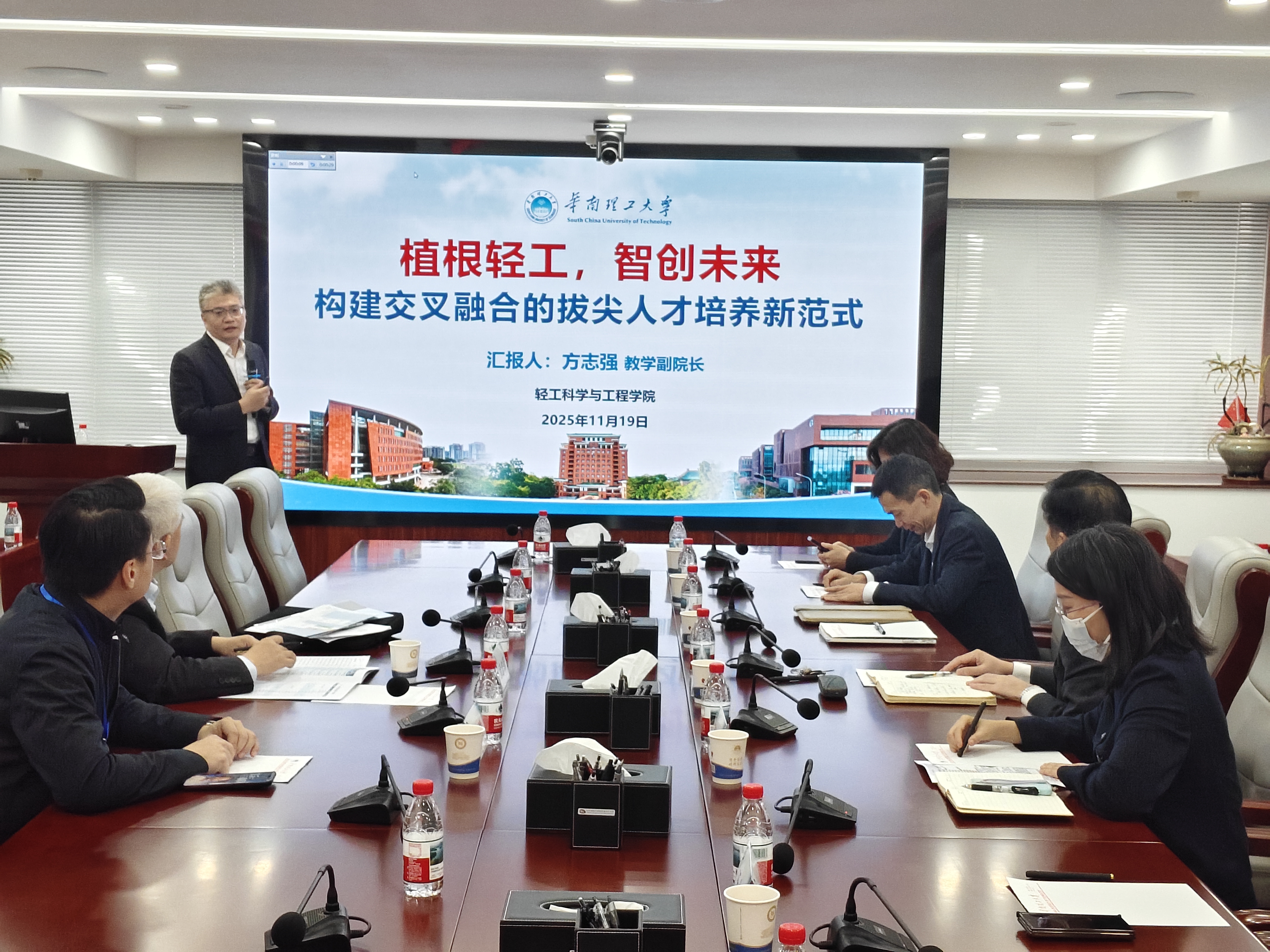 随后,方志强副院长以“根植轻工 智创未来,构建交叉融合的拔尖人才培养新范式”为主题,介绍了学科、专业的发展概况,并重点从“育人理念、核心举措、特色亮点、示范引领、未来规划”五个维度,全面汇报了学院本科人才培养的顶层设计与实践路径。深入阐述了学院坚持立德树人,践行 “厚基础、强实践、重交叉、个性化”的育人理念,充分发挥“一流专业、一流师资、一流平台”的集成优势,着力推进教学模式创新与产学研深度融合。学院在面向轻工领域拔尖创新人才培养方面形成了鲜明特色,为后续高质量内涵式发展奠定了坚实基础。