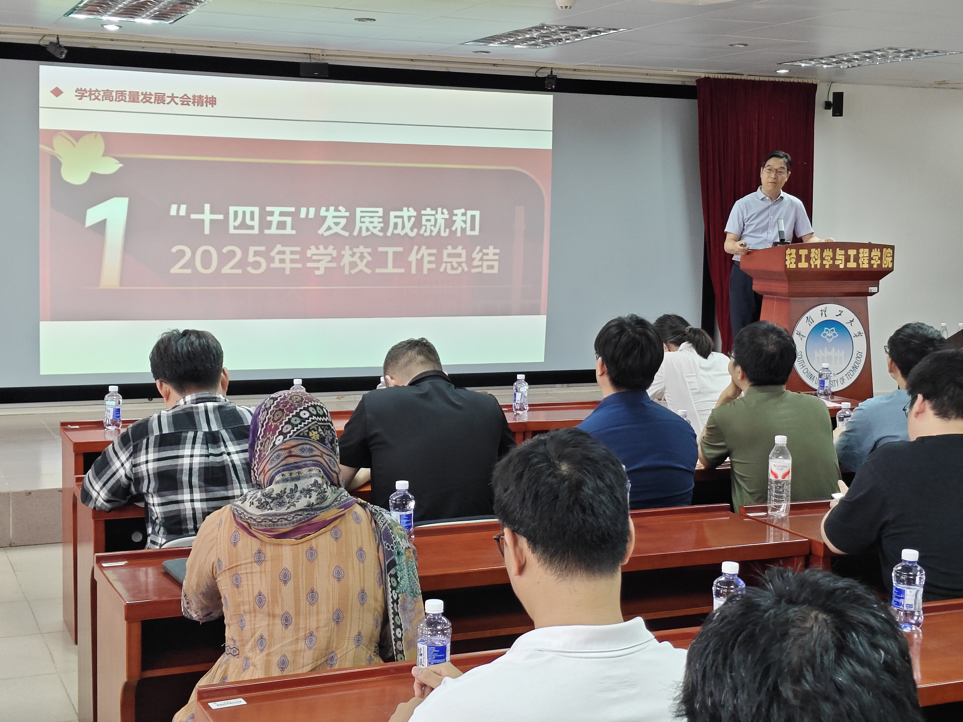 会上,张建功领学并传达学校高质量发展大会精神,介绍了“十四五”期间学校的发展成就和2025年工作总结,并对“十五五”发展形势、发展目标与总体思路、“八大攻坚行动”以及学校2026年十大重点工作进行了详细介绍。他强调,全院教职工要认真学习贯彻学校高质量发展大会精神,把握历史主动,抓住机遇,迎接挑战,在助力学校加速挺进全球百强大学进程中贡献“轻工力量”。
