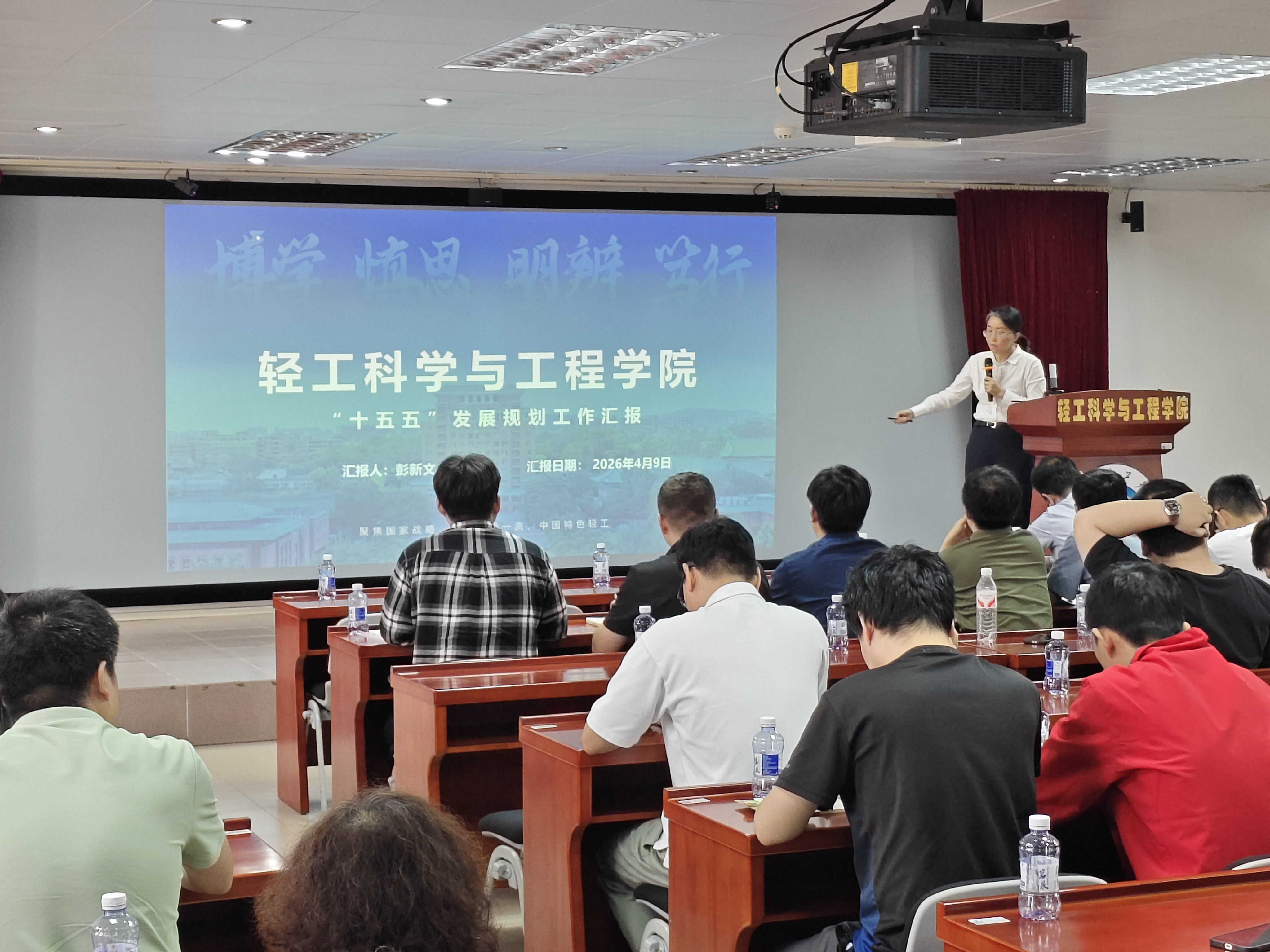 彭新文院长向全体教职工传达了关于完善高校同行专家评议工作的相关要求,并作学院“十五五”发展规划工作汇报。她指出,“十四五”期间,学院以A+学科和“双一流”学科建设为引擎,在人才培养、科学研究、师资队伍、平台建设、社会服务等方面实现了重大突破。面向“十五五”,学院将锚定学校挺进全球百强大学的目标,构建“三位一体”发展新生态,在轻工学科群建设、创新人才培养、师资队伍打造、有组织的科研、产学研协同创新以及国际交流合作等多方面采取多项重点举措,努力打造全球轻工创新高地。随后,她对2026年学院的重点工作进行了具体布置。