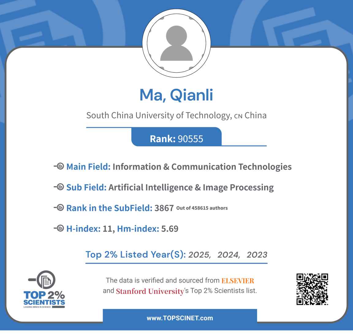 近日,美国斯坦福大学与爱思唯尔更新了标准引文指标的全科学作者数据库,并发布了第8版《全球前2%顶尖科学家榜单2025》(World's Top 2% Scientists 2025)。马千里教授入选“2025年度科学影响力”榜单,这也是马千里教授连续第三年入选该榜单。