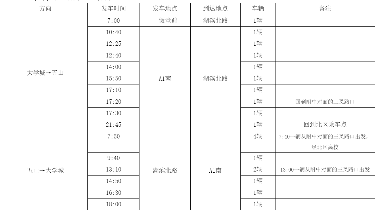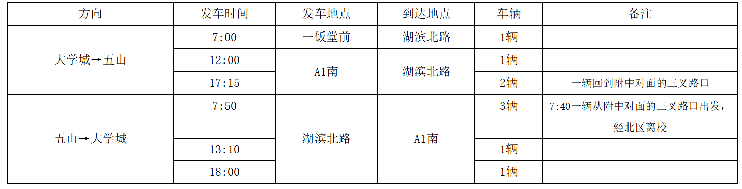 根据学校教学科研工作安排,2025—2026学年度第二学期五山往返大学城校区交通车安排如下: