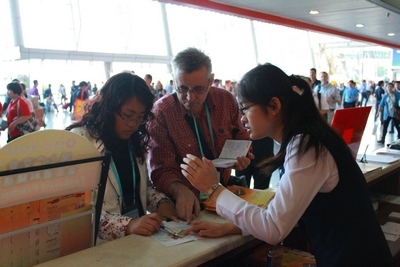 本届广交会,66名外院学子担任的是新闻中心、信息化部的几个相关岗位的服务工作,其中包括新闻中心办公室的嘉宾接待、新闻宣传事务以及信息化部的展商展品查询和网上广交会推广事务。在信息化部服务的同学主要被安排在展馆A区的15个Search咨询点和4个电子商务点,为广交会参展商及外商提供问询、信息查询、上网、打印和传真等服务。参加实习的同学在为客人提供现场服务的同时,也积极完成贸易匹配的工作,帮助客商找到更多的供应商。据主办方的统计显示,本届广交会的三个展区中,由外国语学院所负责的A区的现场采购信息收集3480份,其中可录入2752份,数量和录入率均居A、B、C三个展区之首,极大促进了广交会的商务洽谈效率。在工作中,外院学子还积极寻找提升工作效率的办法,首创现场抽奖等形式,并在三个展区推行,极大地促进贸易匹配工作的数量。此外,外院学子还完成了《第110届广交会电子商务调研报告》等项目。在整个广交会期间,外院团队表现出色,圆满完成了广交会实习的各项任务,充分展示了华工学子的风采。广交会主办单位对外院学子在展会中的工作表现表示充分肯定,称赞华南理工大学学生具有良好的专业技能,服务意识好,应变能力强,表现突出,并且表示今后十分愿意继续与外国语学院以及华南理工大学开展更广泛地合作。