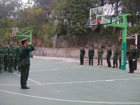 一月九日下午,北区篮球场迎来了众所期盼的09级军训会操。本次会操表演精彩,整齐划一的步伐与矫健的身影无不向人展示着多日来苦训的成果,这是新时代大学生积极进取,朝气蓬勃精神面貌的反映。会操中同学们的表现也得到了各位教官和校领导的充分肯定和高度赞扬。