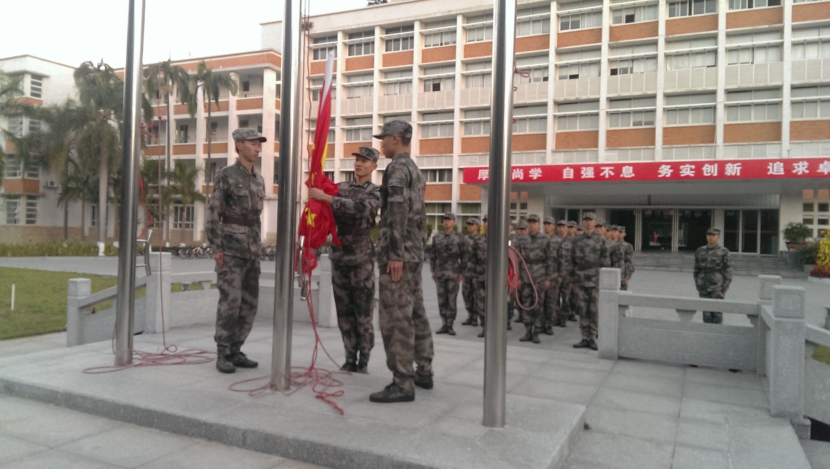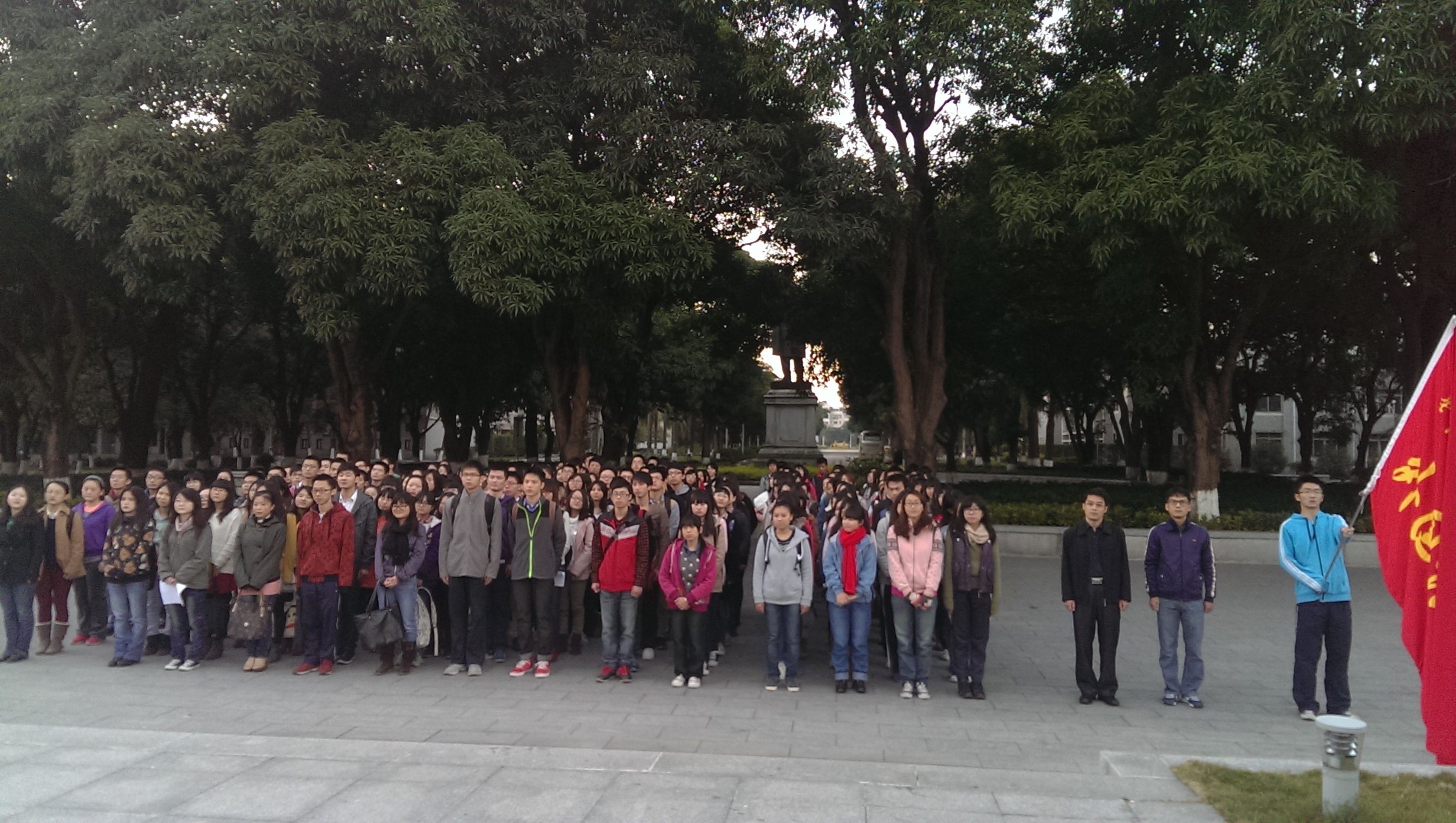 12月2日清晨,冒着刺骨的寒风,我院新学期升国旗仪式于五山校区1号楼广场隆重举行。外国语学院党委刘才刚副书记出席,升旗仪式由赵水东辅导员主持,外国语学院2011 、2012级全体同学参加了升旗仪式。