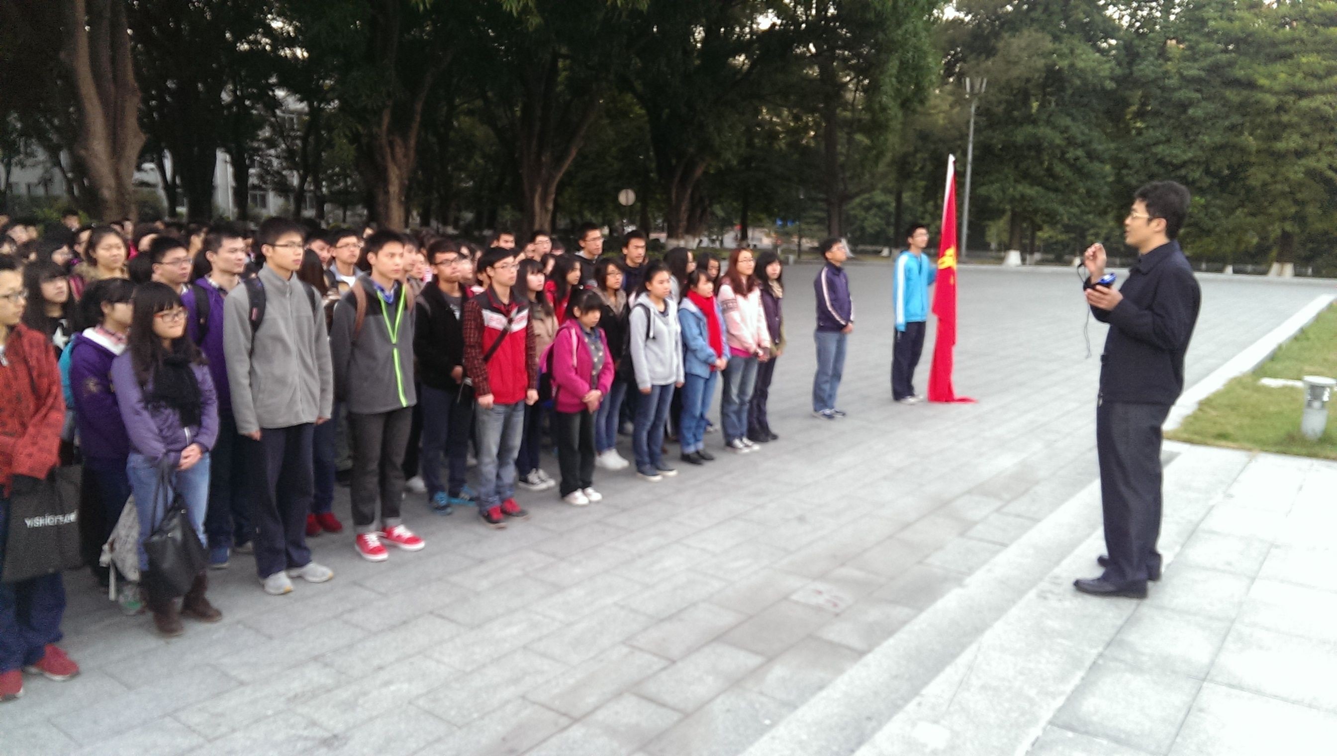 最后,主持人赵水东辅导员对这次升旗仪式进行了总结,肯定了同学们冒着寒风按时到场的纪律性,重申了刘书记讲话中的重点内容。“简短但很深刻。”赵老师如是评价这次升旗仪式。