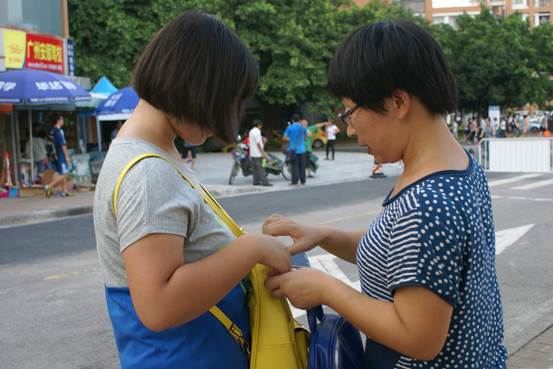 校园中一对将要离别的母女。妈妈要走了,叮嘱女儿一定要把重要证件放好。
