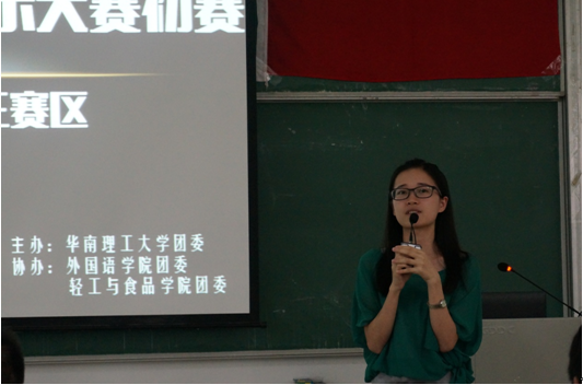 “梦想支部快乐班级”——华南理工大学2015年班级团支部风采展示大赛初赛(五山校区第三赛区)于5月24日下午2:00在340103教室隆重举行。本次大赛由共青团华南理工大学委员会主办,外国语学院团委、轻工与食品学院团委共同承办。外国语学院辅导员杨怡斐老师、外国语学院团委副书记崔文超及轻工与食品学院团委副书记余明浩莅临比赛现场。