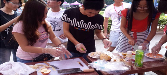 活动当中有数豆子,赢取现场制作水果沙拉,DIY面条等小游戏,活动吸引了众多同学前来参与。