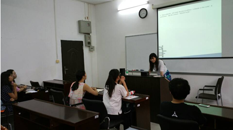 内容包括:志愿者应该具备的工作热情、志愿者管理方案、志愿者的工作具体介绍、志愿时的说明、往年活动情况展示、交流的重要性、不同文化的碰撞要注意的事项。严老师就志愿者的工作介绍做了详细的介绍,其中包括外教接送,陪外教活动,替代办事项等。