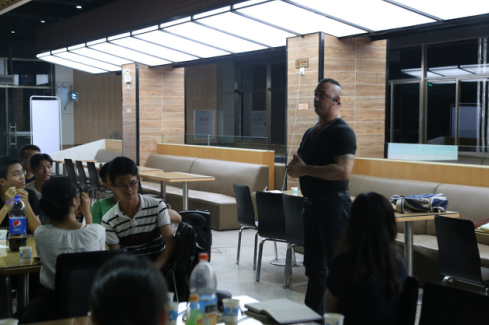 晚上七点整,Talk & share英语沙龙如约在南北两校分别举行。本次英语沙龙的主题是Wechat moments:微信朋友圈。外教们及外国语学院活动指导教师昌老师与同学们一起,用英语谈论微信朋友圈的利弊。开场伊始,主持人致开场白并介绍到场嘉宾。在短暂的开场白之后,主持人详细介绍了关于微信朋友圈的一些现状,并且抛出十个问题,留给每个小组一个小时的时间进行选题和讨论。