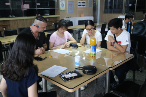 讨论环节中,同学们集思广益,随着外教的引领,由刚开始的胆怯慢慢到勇于提问、大胆发言,现场的气氛迅速转入火热阶段。大家积极讨论的同时,主持人也融入现场,和同学们唇枪舌剑,一番交锋。短暂的讨论时间结束,大家仍意犹未尽,跃跃欲试。