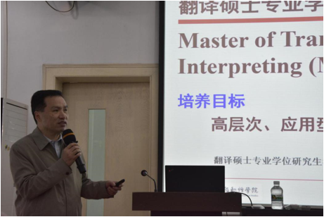 20181122日上午,广东外语外贸大学高级翻译学院的平洪教授受邀莅临我院,以“翻译硕士的能力要求”为主题,对我校外国语学院研究生、尤其是翻译硕士的能力培养做以指导。本次讲座由外国语学院副院长武建国教授主持。