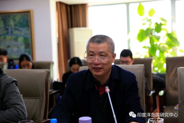 社会科学出版社社长谢寿光教授回顾了区域国别研究的历史,认为国别和区域研究有着巨大的研究空间。目前,世界史、国别史和语言学三支大军已经加入国别区域研究队伍。谢社长在致辞中充分肯定了华南理工大学印度洋岛国研究中心的建设思路和已取得的成绩;希望在“一带一路”倡议深度推进之时,中心进一步加快推进研究工作,全面展开研究成果布局;在中国特色的理论框架内,全面、立体地构建印度洋岛国区域国别研究体系,将中心打造为全国印度洋研究的重要基地。