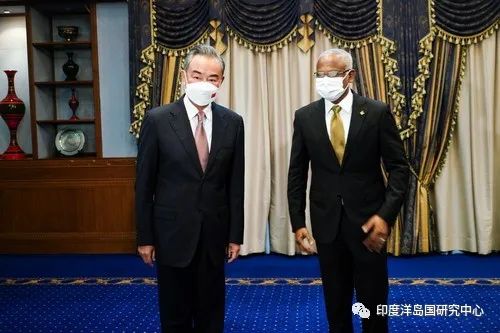 王毅首先转达了习近平主席的亲切问候。王毅说,中马友好交往历史悠久,约600年前,中国航海家郑和两次到访马尔代夫,古代海上丝绸之路早就将两国人民联系在一起。今年是中马建交50周年,两国关系经历了国际风云变幻考验,更加稳定成熟,也为地区和平稳定作出贡献。50年交往的最宝贵经验就是始终相互尊重、平等相待、团结互助,巩固了两国的互信,夯实了双边关系的政治基础。中方赞赏马方坚定支持中方维护核心利益,中方也始终支持马方维护国家主权和领土完整,支持马方走符合本国国情的发展道路,支持马方奉行独立自主的外交政策。中方愿拓展同马方各领域互利合作,支持马方推进多元发展战略,希望中马自贸协定尽快审批生效,助力马经济转型升级。