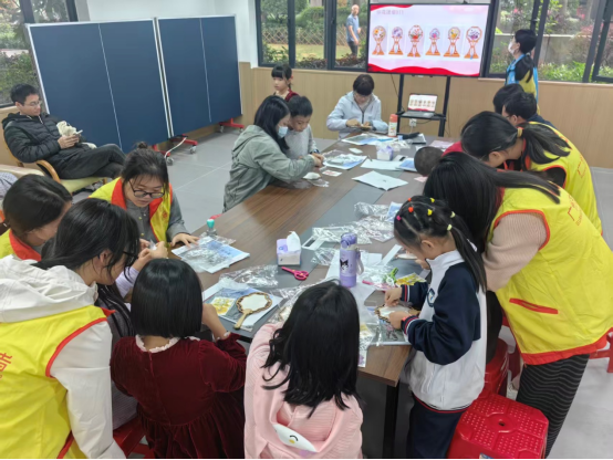 最后到了印花团扇DIY环节,社工与志愿者分发了团扇、印花材料等手工材料。在志愿者和家长的协助下,孩子们认真挑选花材,小心翼翼地拼接和构图,这份亲手制作的“印记”,成为本次活动最直观、最具情感的纪念品。